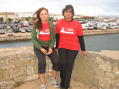 Antes, durante e após estive com "gente" habitual e que gostam de "sofrer", logo de início o Jorge fez o grato favor de levantar o dorsal, corri lado a lado com o Miguel até ao 6 Km, o Gregório que acordou tarde para a prática desportiva, e corre apenas a 1 ano, está uma autêntica gazela tempos abaixo dos 45 minutos, o José Lopes que passou rapidamente por mim ao 4/5 Km e deu-me uma palmadinha, o Mário Lima velozmente ultrapassou-me ao 2/3 Km, o Gilberto já estava com o saco quando cortei a meta, durante a espera de entrega das lembranças estive novamente com o Mário e com o Gameiro e falamos de uma eventual meia-maratona em Outubro na cidade de Londres e do péssimo jogo da Selecção Nacional, a Glorinha que participou na caminhada também já lá estava, e logo a seguir o Carlos Dias aproximou-se à nossa beira.